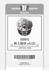 保有株数優待内容(サーティワン eGift)