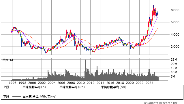 近年の株価は2022年頃から急激に上昇しているのが特徴です。