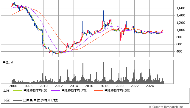 株価は長期的に見ると安定しており、派手さはないものの堅実な経営が続いています。