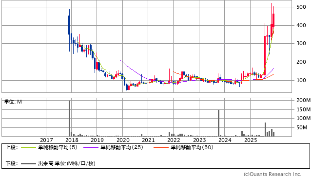 こういう形は「材料が出た」「期待が集まった」などで株価が跳ねやすい一方で、落ち着くまで値動きが荒くなりやすいです。