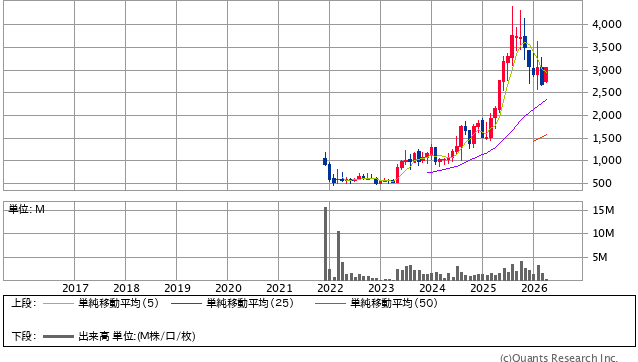 長期でじっくり追う候補にはなりますが、買うなら相場全体や決算後の押し目を意識したいところです。