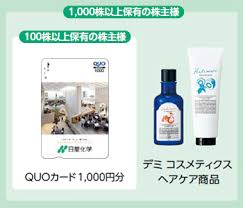 日華化学の株主優待は、12月末時点で一定数以上の株式を保有している株主に対して、自社グループのヘアケア・スタイリング製品から選べるカタログギフト形式で実施されています。