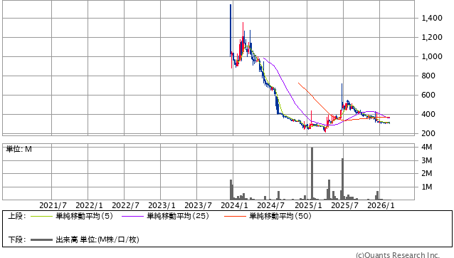 株価チャートも、上場後の急落から戻りきらず、低いところで横ばいが続いています。