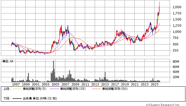 | インフラに近いバルブ大手で、事業の土台は堅く財務も安定寄りです。ただ、30年で見ると長い停滞期もあり、いまの水準で“放っておけば増える”期待は置きにくいので評価は2/5です。優待は割引券中心で利回り換算しづらく、合う人には良いが万人向けではありません。買うなら過熱感が落ちた場面で、配当を受け取りながら長く付き合うのが無難です。 |