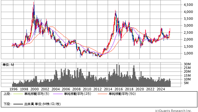 ところが2025年秋は、円安と自動車電装関連の好材料が重なって出来高が増え、2,700円台まで水準を切り上げました。
