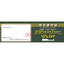 | 500株以上 | 株主優待証(15%割引)1枚 | 国内の自社直営店舗(同伴者も一括会計なら同様に割引) |