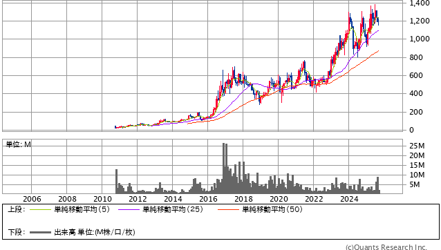 割安株を狙う投資家にとっては少し物足りなく感じるかもしれませんが、成長株として長期保有を考えるなら理解できる評価水準だといえます。