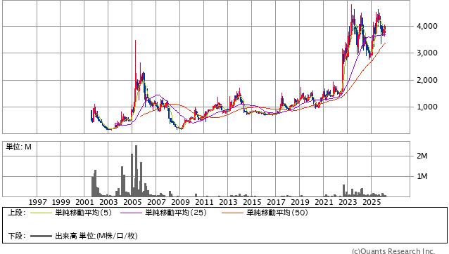株価は長期的には緩やかな上昇トレンドですが、値動きはやや大きく、安定株というよりは中小型成長株の性格を持っています。