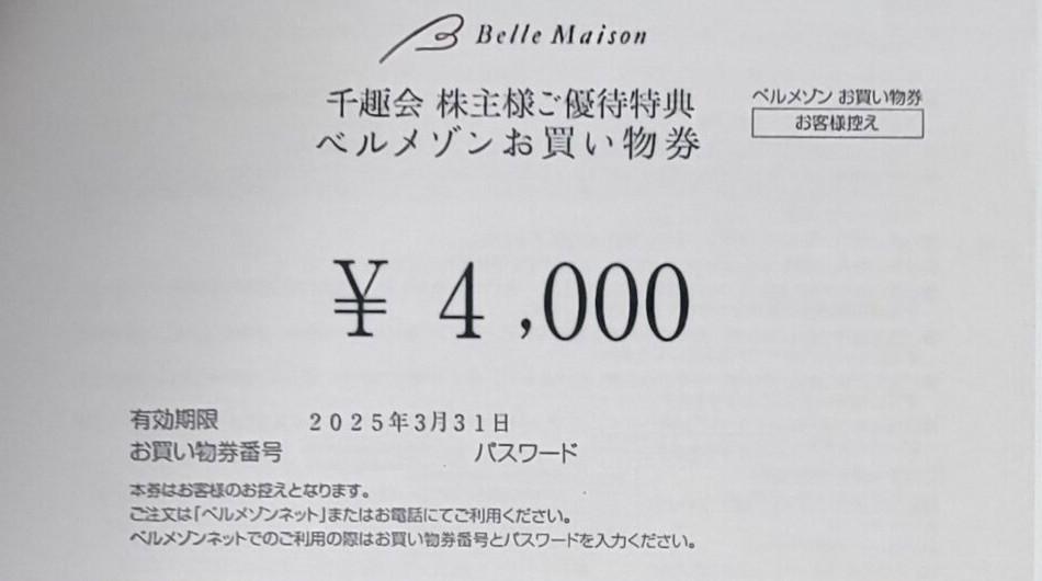 千趣会の株主優待は、ベルメゾンで使える「お買い物券」です。
