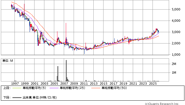 10年チャートを見ても、ぐんぐん成長していく王道の長期成長株というより、景気や需要の波を受けながら動く銘柄として見たほうが実態に近いです。