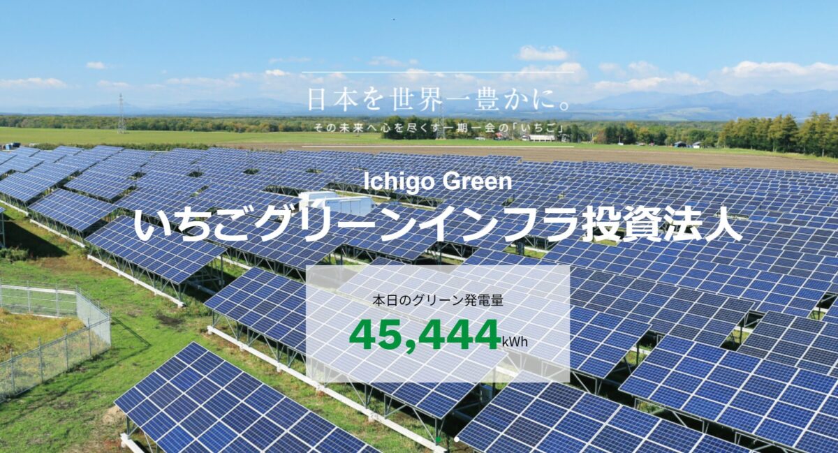 いちごグリーンインフラ投資法人は、太陽光発電所を中心とした再生可能エネルギー発電設備に投資するインフラファンドです。
