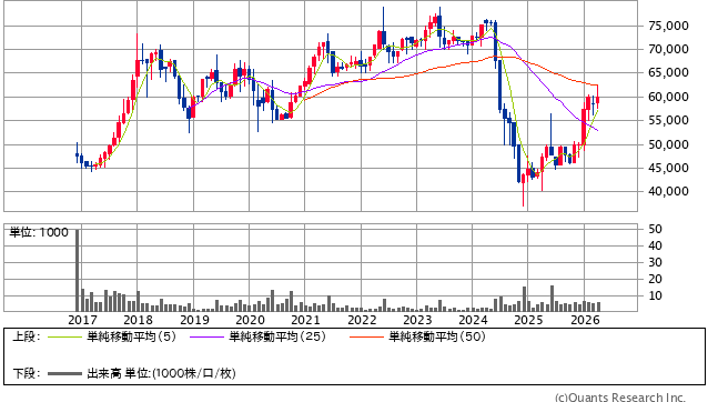10年チャートを見ると、2024年ごろから大きく崩れ、その後は戻しているものの、以前の高値圏にはまだ届いていません。