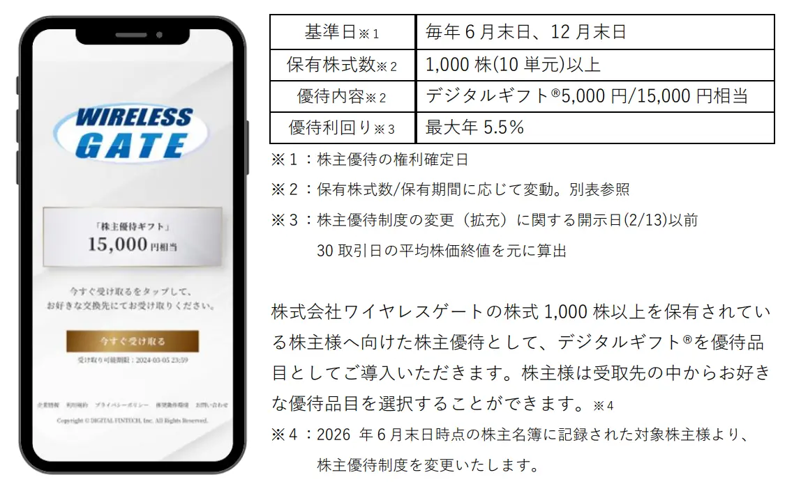 優待面から見ると、ワイヤレスゲートはかなり分かりやすい銘柄です。