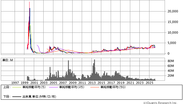 30年単位の大きな流れで見ても、安定して右肩上がりに資産が増える銘柄というより、テーマ性や事業再編、相場環境の影響を受けやすい印象があります。