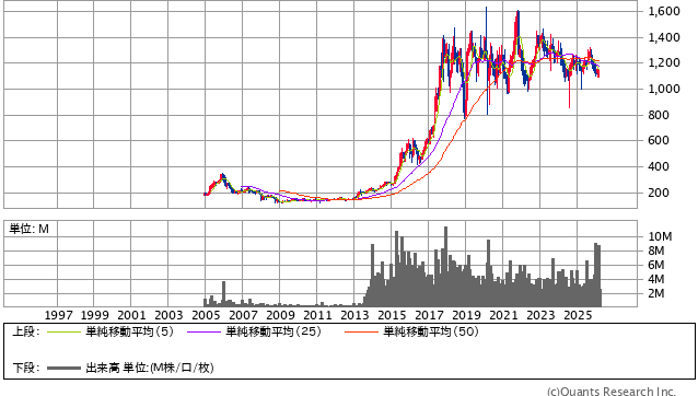 | 高収益・高自己資本・連続増配傾向に加え、優待も年2回へ強化されたことで、長期保有での満足感が高い銘柄です。30年チャートでも長く右肩上がりの成長を経たあと、高値圏で大きく崩れず推移しており、短期妙味よりも「強い事業をじっくり持つ」投資と相性が良いと考えます。 |