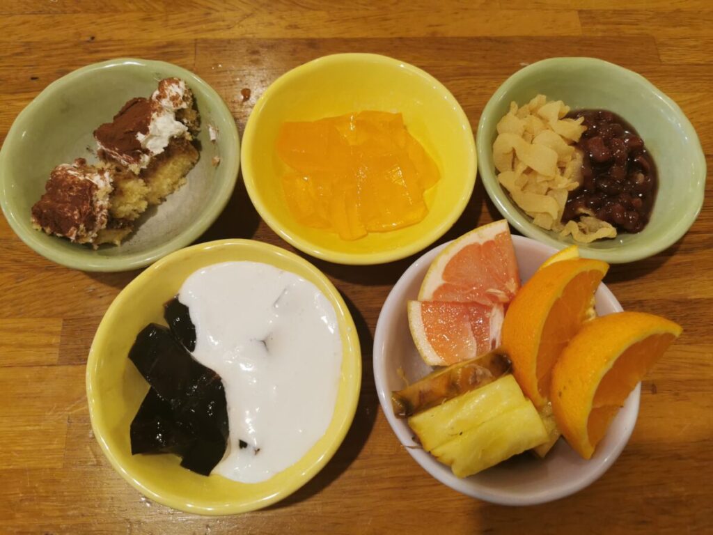 また、生クリームたっぷりのコーヒーゼリーは他のファミレス等のコーヒーゼリーとは一線を画すおいしさですし、えびせんや和テイストの生八ツ橋なども用意されていることもポイントです。