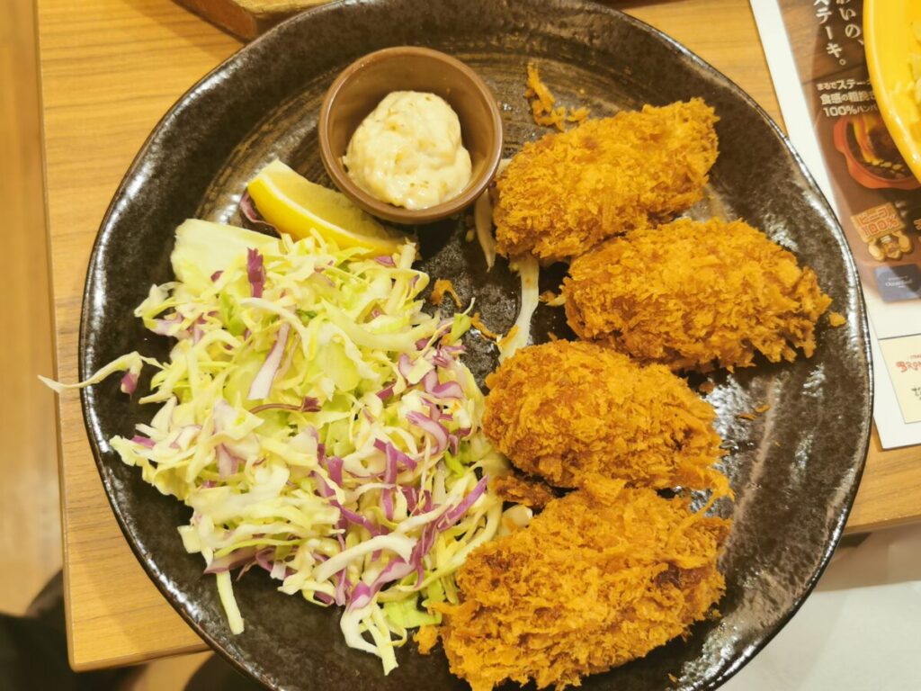 冬季限定のカキフライは、衣は見た目からしてカリッと軽やかで、箸を入れると中からジューシーな牡蠣の旨みがあふれ出します。