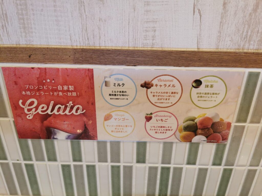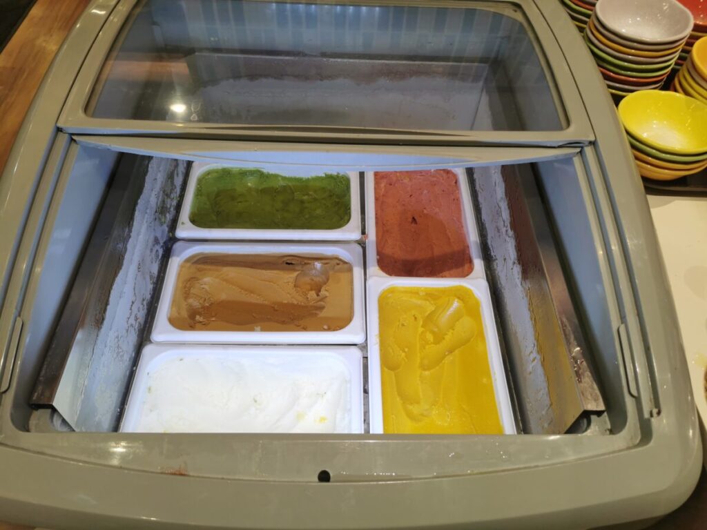 名物の自家製ジェラートは、ミルク・キャラメル・抹茶・いちご・マンゴーなど定番中心。