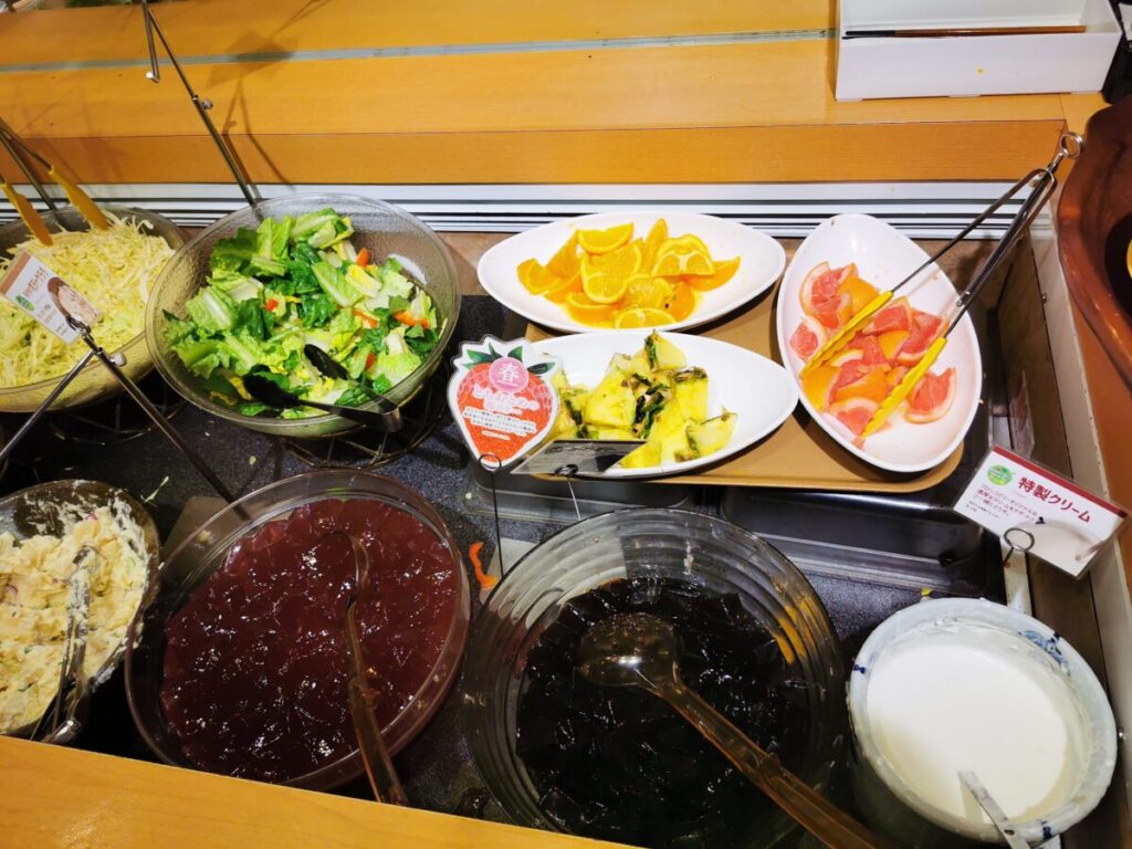 ただ単に野菜をカットして並べただけでなく手の込んだサラダが多く、野菜の鮮度・種類の豊富さ・手作りドレッシングの種類や完成度など、どれをとっても一段上です。
