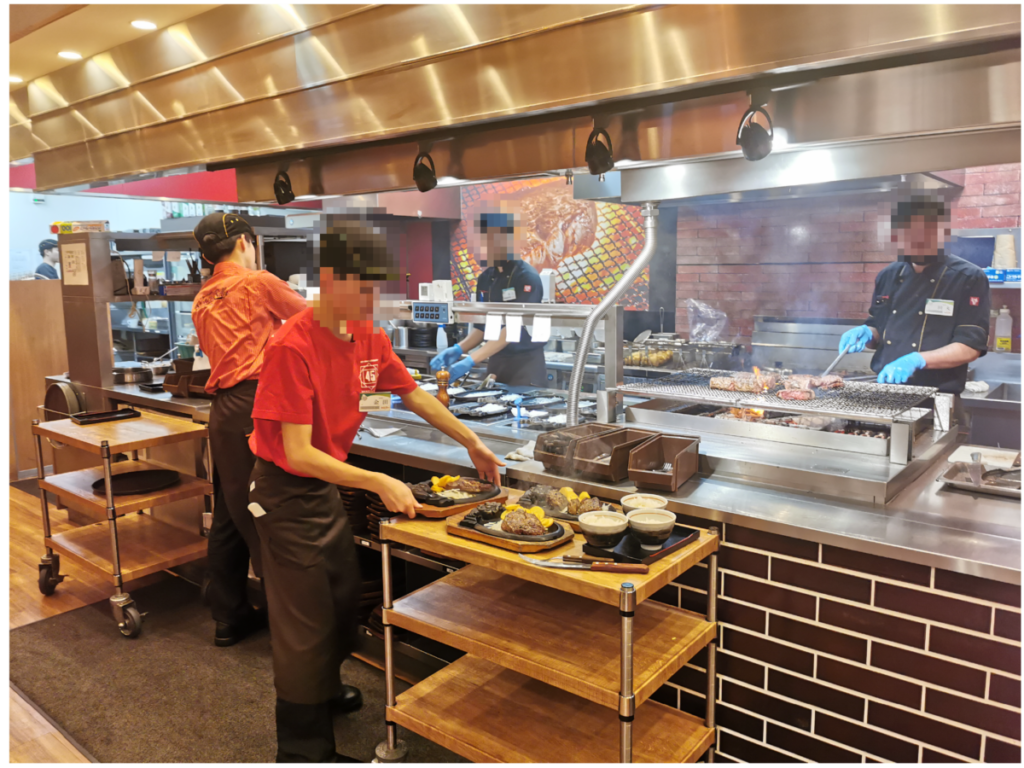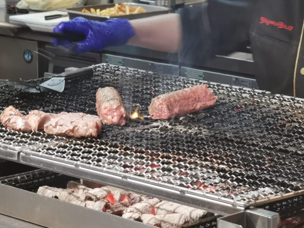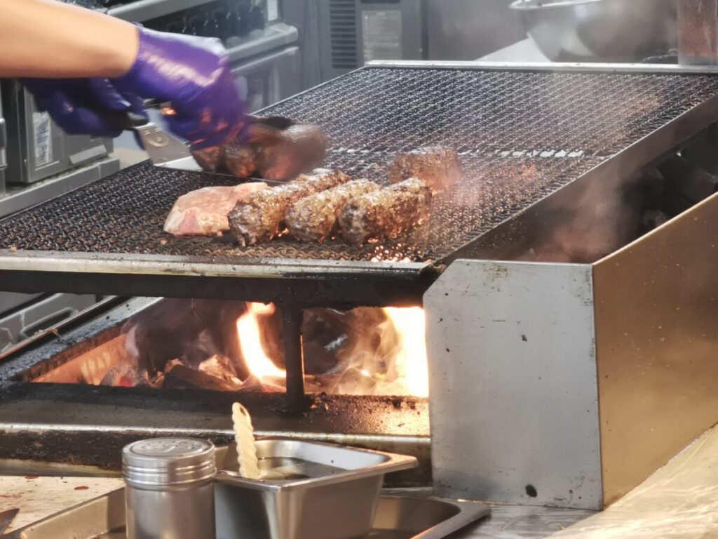 ブロンコビリー最大の特徴は、オープンキッチンで繰り広げられる炭火焼きのライブ感