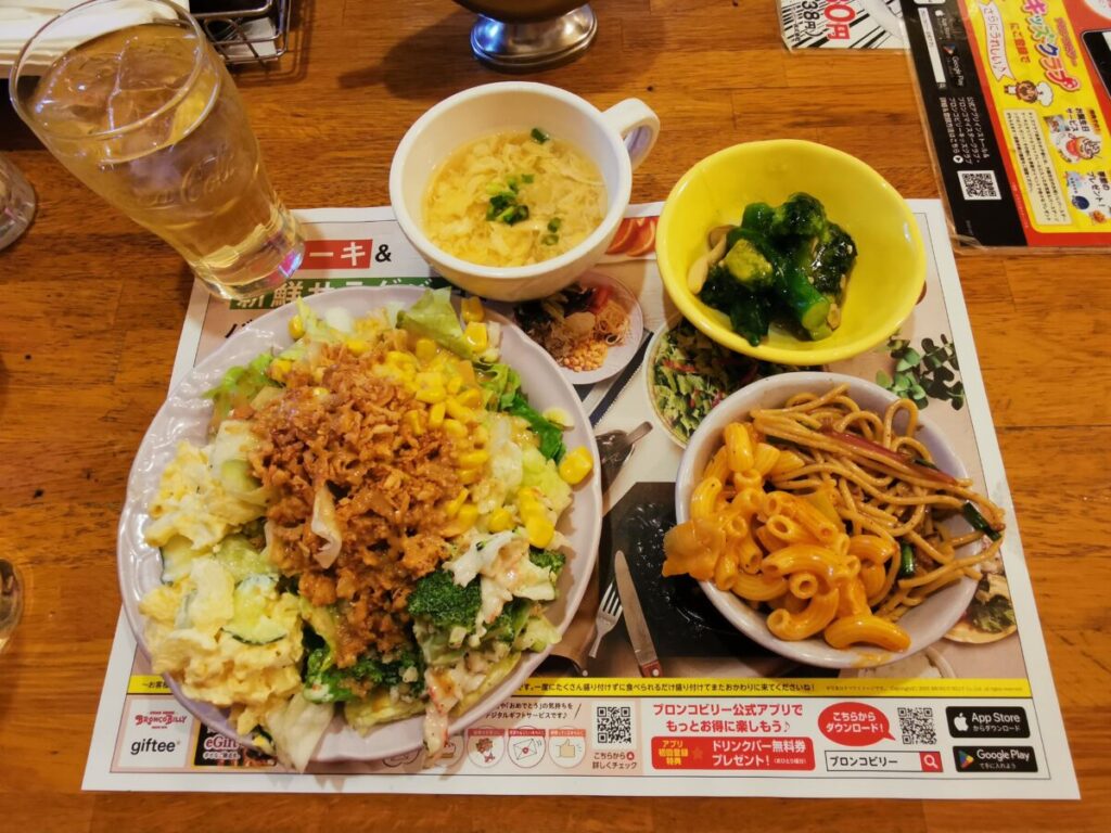 ブロンコビリーのサラダバーをはじめとしたビュッフェはかなりおすすめ!ですが、他のビュッフェによくあるカレーとスープバーがないのが若干マイナスです。