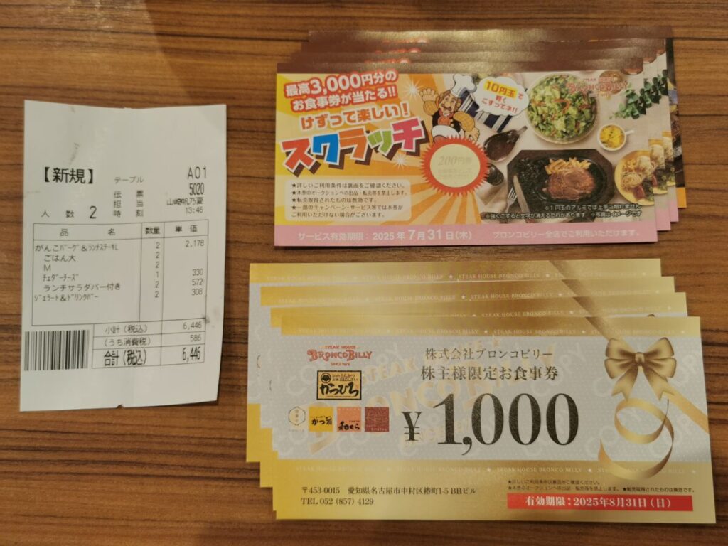 ブロンコビリーは、 スクラッチ割引+アプリ10%OFF+株主優待券など を組み合わせることで、味の満足度も高いうえにかなりお得に利用できます。
