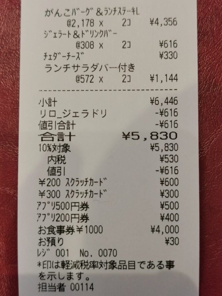 さらに、ブロンコビリーのアプリクーポンとして500円クーポン1枚と、200円クーポン2枚を使いました。