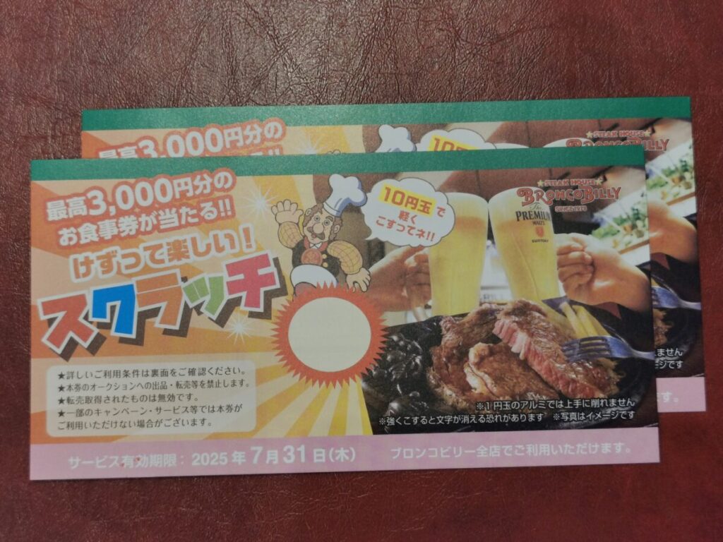 ブロンコビリーではお会計に応じてスクラッチが貰えます。このスクラッチは何枚も利用可能なため、今回は200円のスクラッチ3枚、300円のスクラッチ1枚をつかいました。