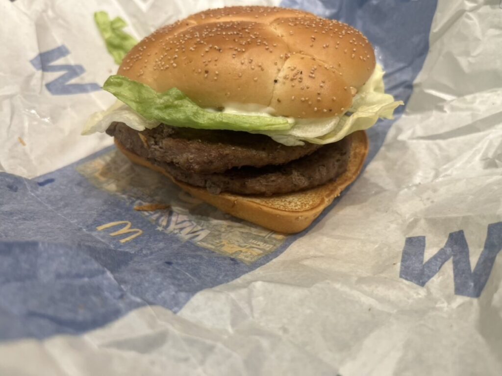 夜マックで食べたダブル肉厚ビーフは、肉のボリュームとコクをしっかり味わえる重量級の一品で、シリーズの中でも最も“満腹感”を重視した存在でした。