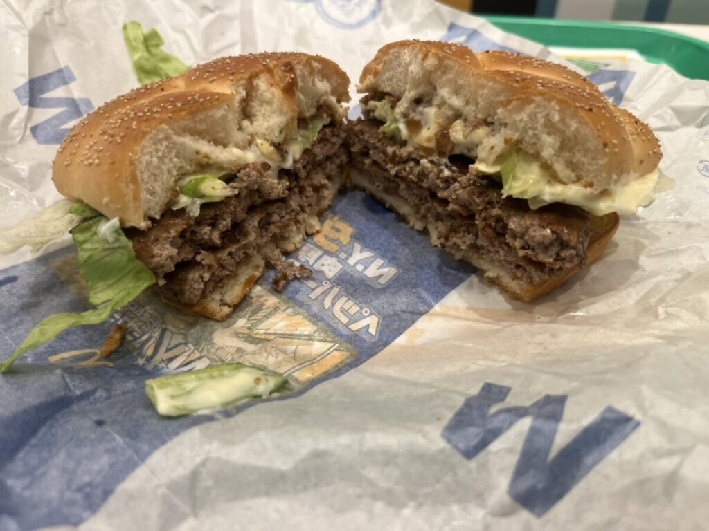 ここがあるせいで、ダブルでも単調にならず「肉+肉」にもう一段コクが足される感じ。