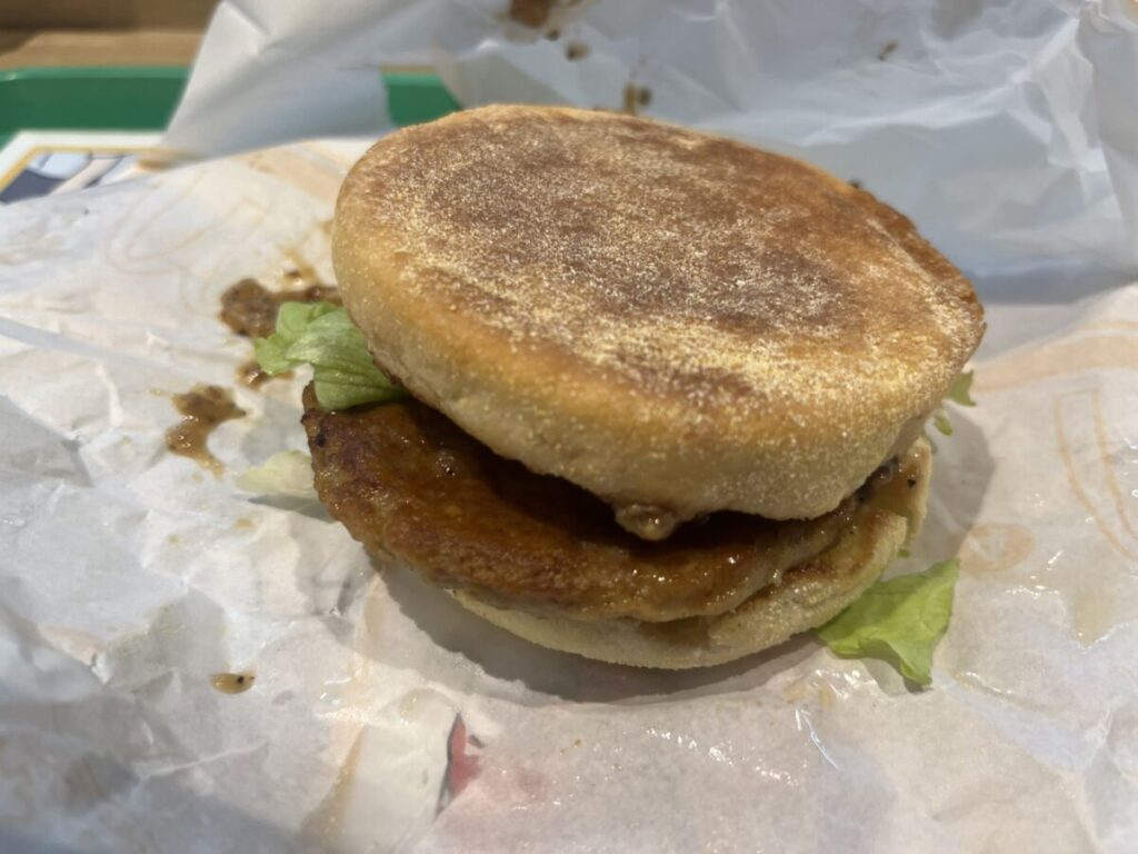 マフィンの素朴な食感がある分、夜マックのビーフ系よりも全体のバランスはややマイルド。
