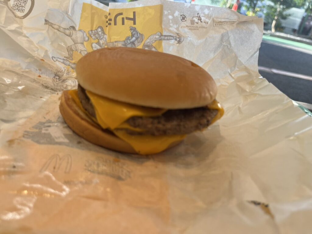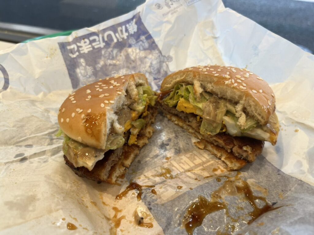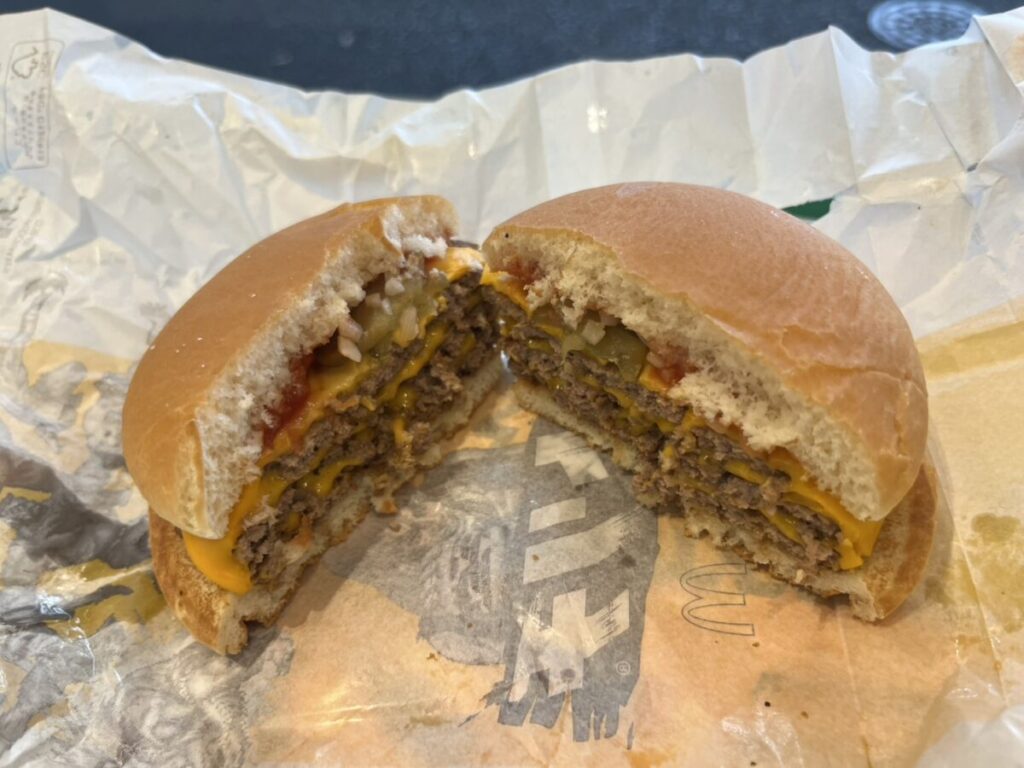 ダブルチーズならではの“とろける層”が舌にまとわりつき、そこにピクルスの酸味がアクセントを加えることで、単調にならず最後まで飽きずに食べられます。