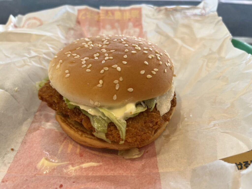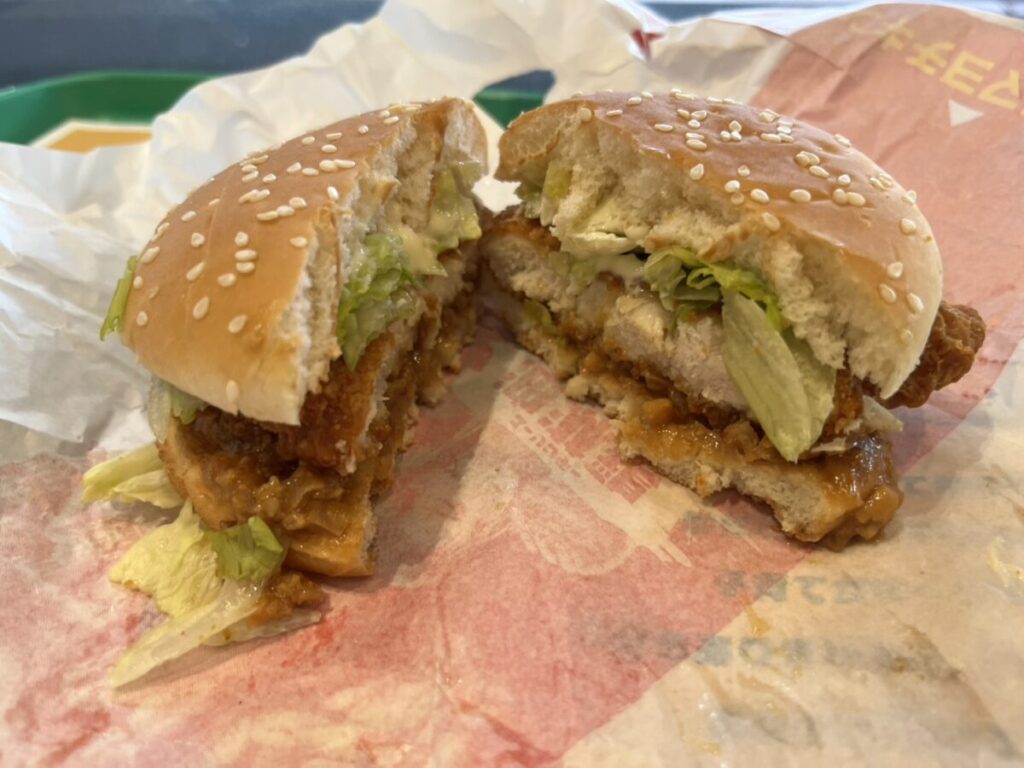チキンパティはチキンフィレオ系の軽めの食感で、そこに具入りの油淋鶏フィリングが重なり、噛むたびにじゅわっとおいしさが出てきます。