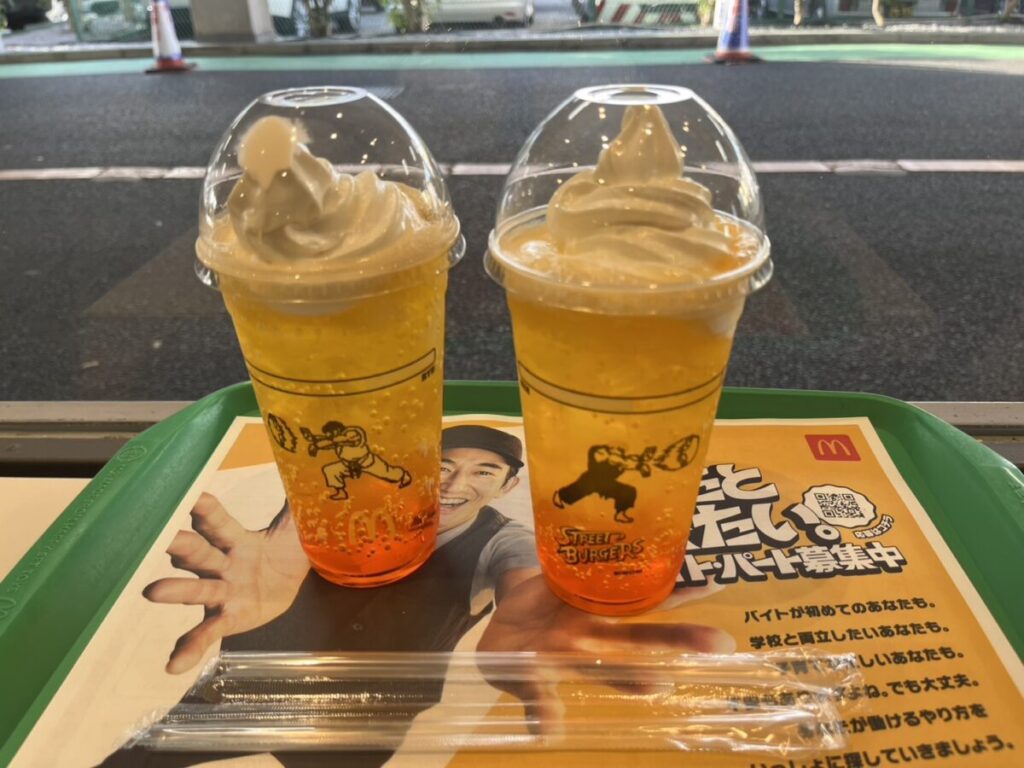 鮮やかなオレンジ色の炭酸で、コラボカップにはリュウやケンが描かれていてテンションが上がります。